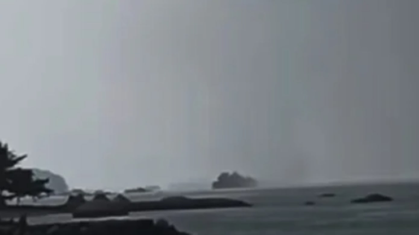 马去西亚马6甲丹绒比达推(Tanjong Bidara) 海疆呈现火龙卷,火龙卷从海上1道背岸边挪动,将岸边躲雨的公众吓坏,纷繁惊吸并祷告没有要带去天灾。